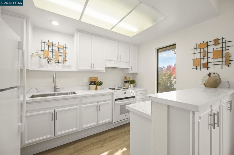 Tastefully updated comfortable Del Monte. Featuring brand-new luxury vinyl plank flooring and plush carpeting throughout. Inviting interior is move-in ready. The kitchen shines with stunning new quartz countertops and a sleek, modern range—perfect for your culinary adventures. Relax in the spacious living room, highlighted by a charming bay window filling the space with natural light. The dining area offers a peaceful and bright view of the magnolia-lined courtyard, creating the ideal setting for morning coffee or evening meals. Enjoy the convenience of a carport located just steps from your unit, with easy access to both the building and the laundry room. Don't miss the chance to own this affordable refreshed gem—schedule your showing today!