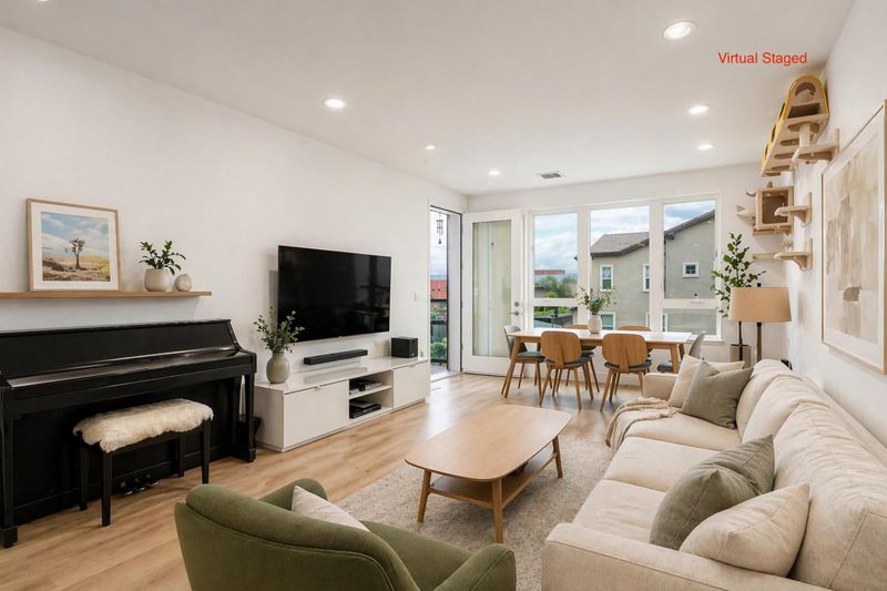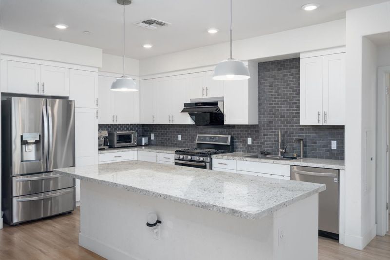 Welcome to 5951 Sunstone Dr #312 in the desirable Avenue One community. Built in 2019, this ~1,306 sq ft condo offers single-level living with elevator access. The open-concept floor plan features 2 primary suites plus a versatile den, ideal for an office or guest space. The kitchen includes white cabinetry with soft-close features, quartz countertops, a large island with breakfast bar, with high end LG appliances with gas range. The primary suite offers a walk-in closet and dual-sink vanity with walk-in shower. Additional highlights include a private balcony and a rare, secure gated garage with 2 assigned side-by-side parking spaces with EV charge point station in the garage and designated guest parking inside garage. Community amenities include a clubhouse, pool, spa, fitness center, yoga room, BBQ areas, and community gardens. Conveniently located near Costco, dining, Hwy 85 & 101, and VTA Light Rail.