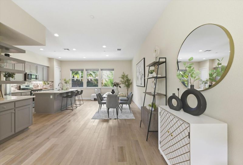 A masterclass in contemporary design in this sun-drenched 2019-built residence, perfectly positioned in the vibrant heart of Silicon Valley. Located within the prestigious Los Altos High School boundary. The main level serves as the homes social centerpiece, where soaring 10ft ceilings and engineered wood flooring frame an expansive open-concept layout. The gourmet kitchen - a culinary enthusiast's dream - features a massive quartz island, premium stainless steel appliances with a gas range, and crisp quartz countertops. Retreat to the private balcony for serene views, or ascend to the top-floor primary distinguished by 11ft ceilings and a walk-in shower ensuite with a double vanity. The home includes a secondary ensuite bedroom and a first-floor guest suite perfect for a home office or a discrete income-generating opportunity. Modern essentials abound, including a two-car garage with a EV prewired, dual-zone AC, and a tankless water heater for endless efficiency. The lifestyle is unparalleled. A tranquil vantage point for enjoying the serene neighborhood vistas. You are minutes from Google, Meta, and LinkedIn, with the dining and culture of downtown, the newly debuted Magic Bridge Park, and the ultimate convenience of nearby Safeway. A modern fantastic move-in home, must see!