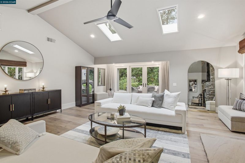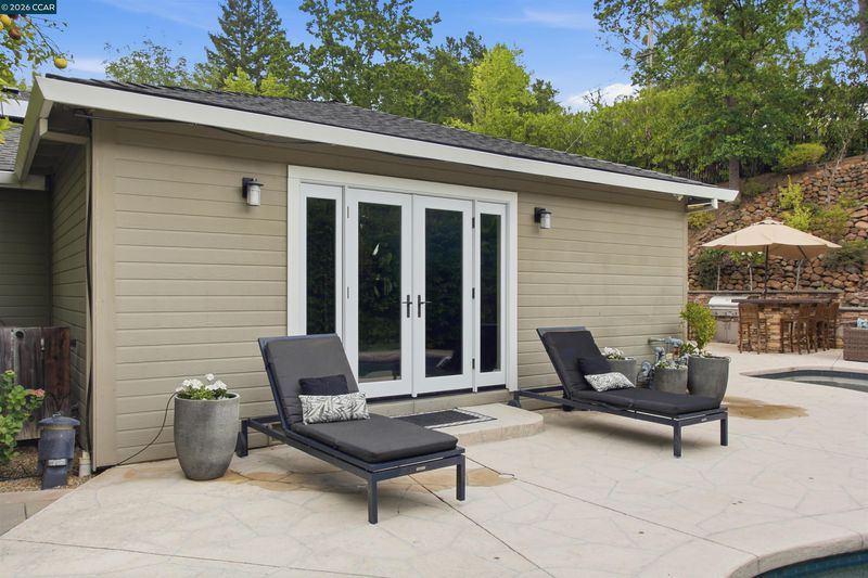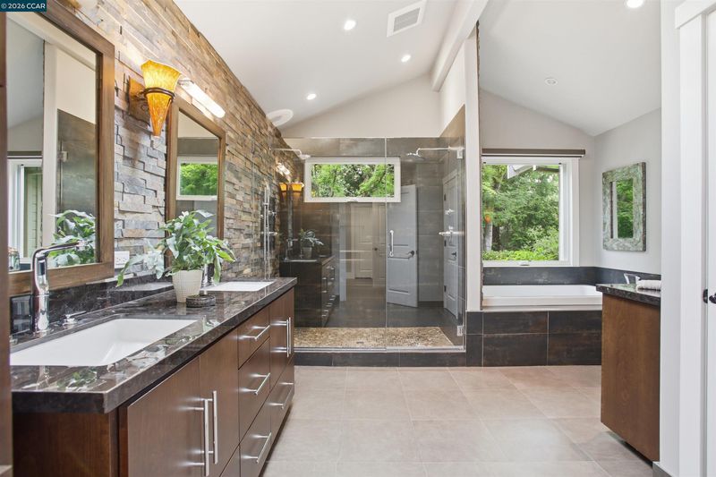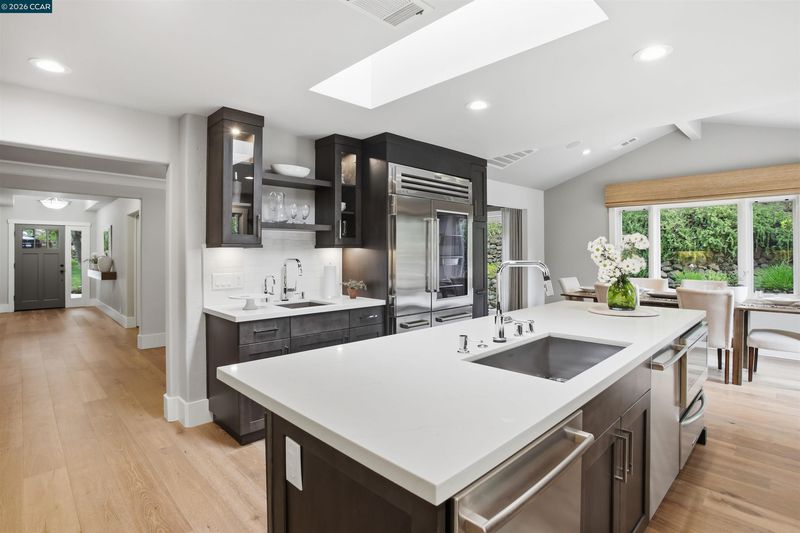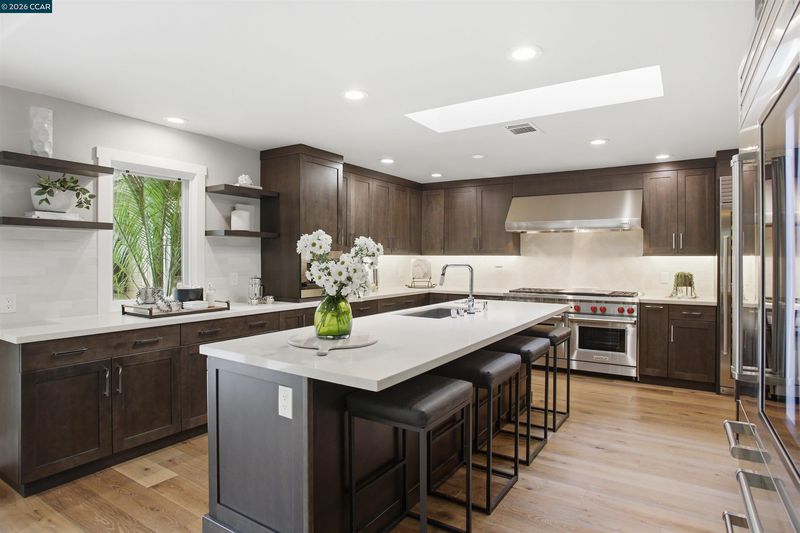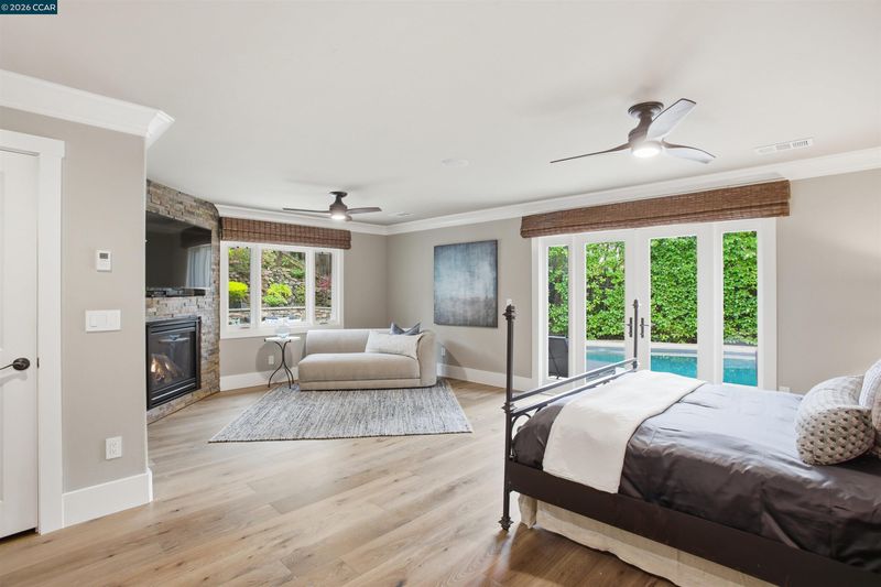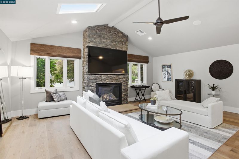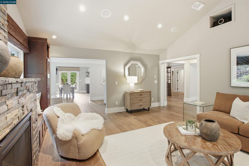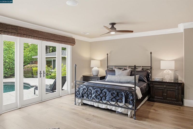 Tucked in the coveted Lakewood neighborhood, this breathtaking single-story Craftsman offers estate-style living (Main house 4 bed 4.5 bath 3,678 sq ft plus ADU 2 bed 1 bath 842 sq ft.) Two oversized living rooms showcase soaring ceilings, custom hardwood floors, built-ins, picture windows, gas fireplaces in each living room, and a drop-down movie screen for effortless entertaining. Automated window coverings throughout the property. The chef’s quartz kitchen is appointed with top-tier Wolf appliances, a 60 inch range with double griddle and built in coffee maker. Sub-Zero Pro refrigerator, and a full-size wine fridge, flowing seamlessly into the formal dining room. The luxurious primary suite features a private sitting area, fireplace, dual walk-in closets, a spa-inspired bath with soaking tub, oversized shower, plus dual vanities and a private French door to the backyard. Three additional bedrooms are en-suite, each with generous closets and abundant natural light. A designer ADU offers its own fireplace, gourmet kitchen, laundry and sleek bathroom—ideal for guests or extended family. The resort-style grounds include an outdoor kitchen, dramatic waterfall, multiple seating areas, fire pit, and saltwater pool with Cabo deck. Complete with abundant storage, a two-car garage, additional parking, and just minutes to downtown Walnut Creek, trails, parks, BART, freeways, and top-rated Walnut Creek schools.